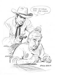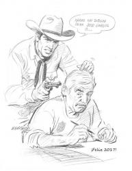Oggi ho ricevuto un altro regalo di Natale molto speciale. È stato inviato dal Maestro argentino Ernesto Rudesindo García Seijas. Un'idea divertente ... Tex minacciando il Maestro per lui fare un disegno per me. Eccolo: